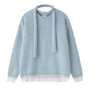 Sweet Style Lace Patchwork Sweater Blue