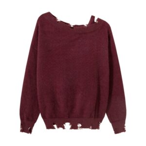 Retro Loose Burgundy Off-The-Shoulder Sweater